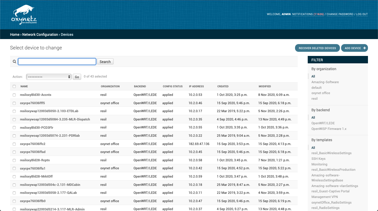 Oxynetz OxWISP is a cloud based intuitive and powerful tool for managing and monitoring oxynetz smart WiFi network easily and effectively. OxWISP provides management of all your WiFi access points (APs) all from a single location.